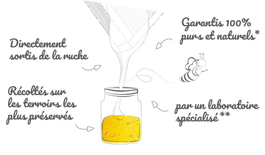 C’est pourquoi nous nous engageons à vous proposer des miels garantis 100% purs et naturels par un laboratoire spécialisé !