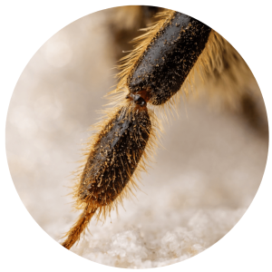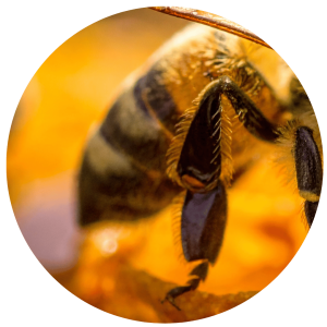 L’abeille possède six pattes. Elles lui servent à se déplacer, à nettoyer son corps et à transporter le pollen grâce à de petites "corbeilles" situées sur les pattes arrière.